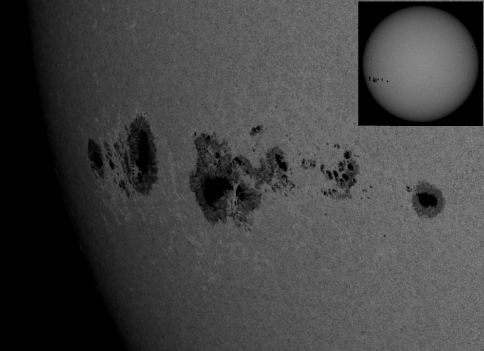 Слабые духом астрономы NOAA, ответственные за присваивание номеров группам пятен, очевидно борясь с паникой в своих рядах, сегодня предприняли попытку "смягчить шок" и разбили данный комплекс сразу на три группы пятен. Единая площадь комплекса была разделена в каталоге между тремя номерами: 4296 (левые пятна), 4294 (центральные пятна) и 4298 (правые пятна), в результате чего центральная группа 4294 лишилась значительной доли своей законной площади, похудела в каталоге до 1100 единиц, и формально занимает теперь лишь второе место года. Впрочем, мало кто сомневается, что уже завтра она вернёт упущенное, хотя, возможно, борьба еще не закончилась и у NOAA уже заготовлена новая пара номеров для ответного удара. Впрочем, все эти действия не влияют на объективный суммарный размер группы.